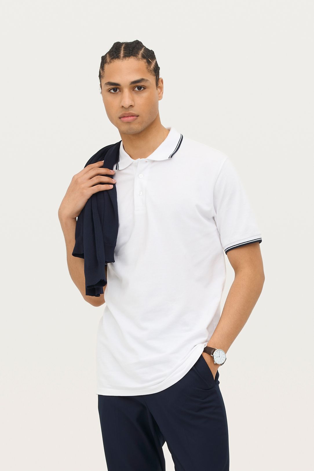 Collo e giromaniche a righe in contrasto